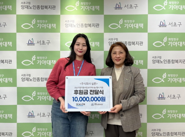 실론, 서초구립 양재노인종합복지관에 기부금 전달… 저소득 조손가정 지원