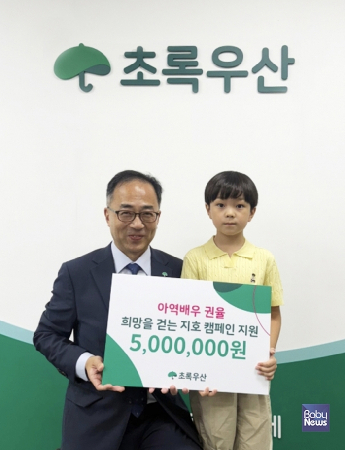 지난달 29일 권율 군은 초록우산을 직접 방문해 손편지와 함께 그 동안 모아온 출연료 500만원을 ‘지호’를 지원하기 위해 기부했다.캠페인 ‘희망을 걷는 9살 지호’는 신경모세포종 4기 진단을 받은 뒤 11번의 항암치료를 이겨내고 있는 지호 군을 지원하기 위한 초록우산 캠페인이다.