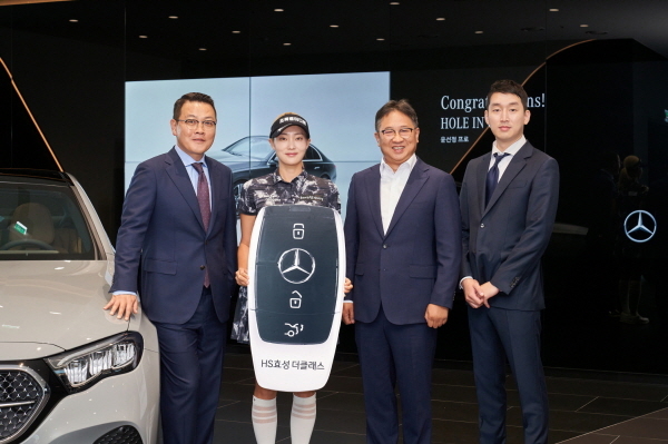 HS효성더클래스,홀인원 주인공 윤선정에 ‘벤츠 E200’ 전달 [사진 제공=HS효성더클래스] 최민경 프로는 지난 6월 8일 열린 ‘2025 셀트리온 퀸즈 마스터즈’에서 올 시즌 지정 홀 첫 번째 홀인원을 기록했고,윤선정 프로는 6월 21일 ‘더헤븐 마스터즈’에서 지정 홀 두 번째 홀인원을 기록해 7500만원 상당의 2025년식 ‘벤츠 E200 아방가르드’ 차량을 부상으로 받았다.
