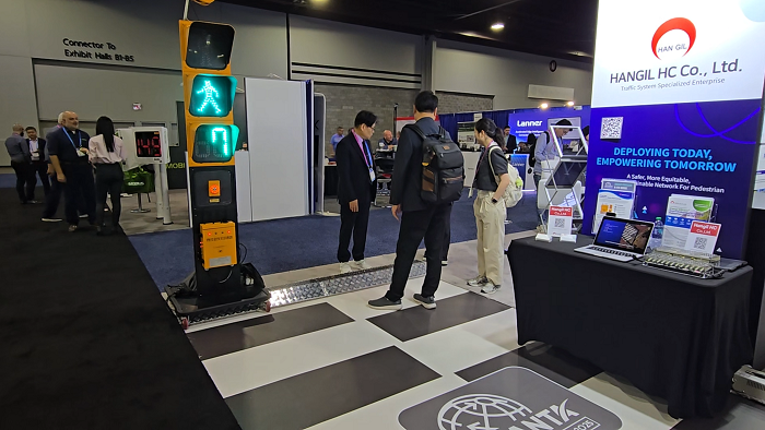 < 사진 제공 : ㈜한길에이치씨 > ㈜한길에이치씨(HANGIL HC Co.,Ltd.)는 지난달 8월 24일부터 28일까지 미국 조지아주 애틀랜타에서 열린 제31회 ITS(지능형교통체계) 세계총회에 한국관 기업으로 참가해 차세대 ‘첨단 스마트 횡단보도 솔루션’을 선보였다.
