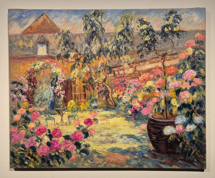 이자벨 드 가네의 ‘화가의 정원’. [서나은 인턴기자] 그의 그림에는 특별한 비밀이 또 하나 숨어 있습니다. 바로 원근법이 살아 있다는 겁니다. 요즘은 원근법이 익숙할지 몰라도 인상주의는 원래 원근법 표현을 잘 하지 않았습니다. 사물이 거리에 따라 크고 작게 보이는 그 사실 자체보다는 빛의 표현을 더 중요하게 여겼기 때문입니다. 하지만 이자벨의 작품은 원근법이 두드러집니다. 그래서 그가 그려둔 요소를 하나하나 따라가다 보면 자연스레 시선이 그림 가운데로 모이며 빠져드는 듯한 느낌이 납니다.