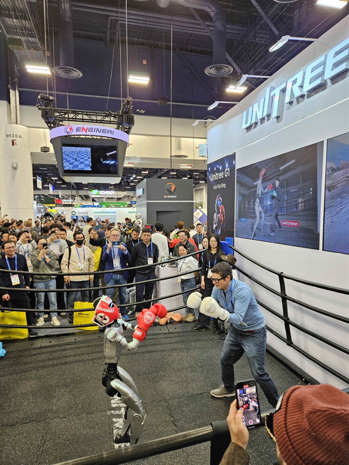 미국 라스베이거스에서 열린 세계 최대 가전·정보기술(IT) 전시회 CES 2026. 라스베이거스컨벤션센터(LVCC) 노스홀엔 이곳이 '소비자 가전제품 전시회'인지 아니면 '로봇 전시회'인지 구분이 되지 않을 정도로 많은 로봇 기업이 전시 부스를 선보였다. 그중 많은 곳이 중국 휴머노이드 로봇 기업이었다. 지난해 출하량 기준 휴머노이드 로봇 시장 1위인 애지봇을 포함해 2위인 유니트리,5위 엔진AI,6위 푸리에인텔리전스까지 중국 대표 기업이 총출동했다.