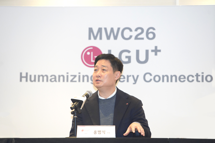 홍범식 LG유플러스 대표는 4일(현지시간) 세계 최대 이동통신 전시회 ‘MWC 26’이 열리고 있는 스페인 바르셀로나에서 기자간담회를 열고 ‘글로벌 AI 소프트웨어 기업(Global AI Software Company)’으로 도약한다는 중장기 비전을 발표했다.