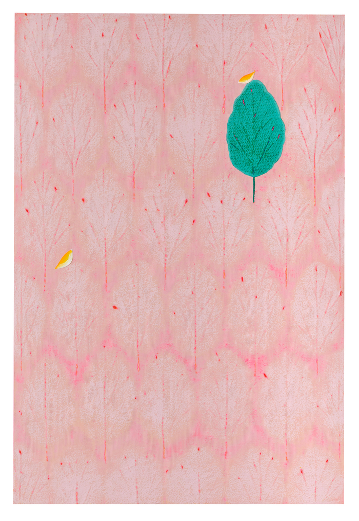 작업은 아크릴 물감에 백토를 섞어 화면에 올린 뒤,조각칼로 긁어내는 과정을 반복하는 조삭 기법으로 완성된다. 물감을 쌓고 긁는 행위가 이어지며 화면에는 미묘한 색의 층과 질감이 형성된다. 꽃과 나무 등 구상적 형상은 점차 단순화되거나 패턴으로 바뀐다.