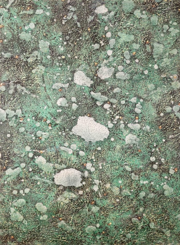 방혜자의 ‘하늘의 토지’(2008) <영은미술관,국립현대미술관> 방초아 국립현대미술관 학예연구사는 “방혜자는 독자적인 위치에 있는 작가”라며 “그의 작품은 우주를 표현한 구상회화로도 보이고,마음을 재현한 추상회화로도 보인다”고 말했다. 이어 “영성적이고 신비로운 작업으로 주목받아 미술사적 맥락에서 제대로 평가받지 못했다”고 설명했다.